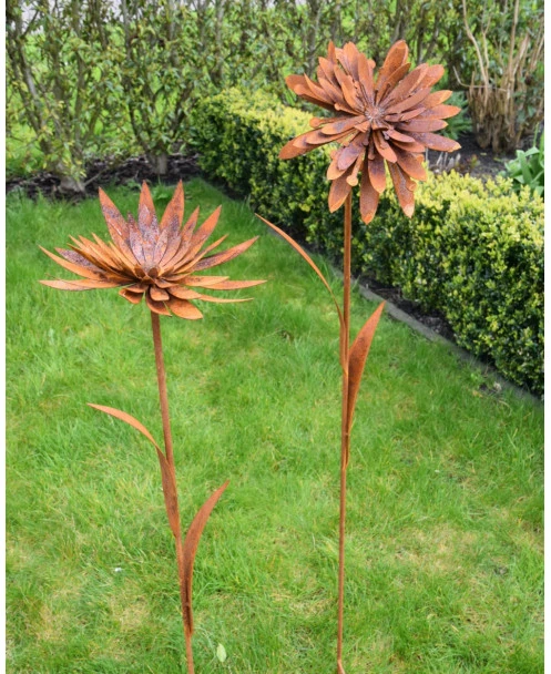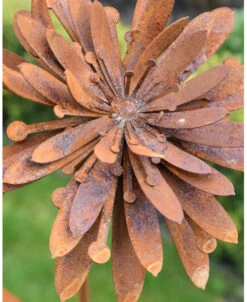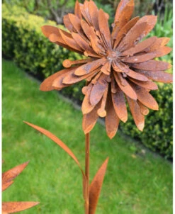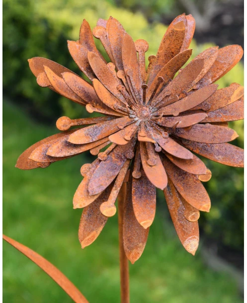 Bloemen tuinprikker Beemdkroon ecoroest. Deze mooie ecoroest tuin bloem de Beemdkroon ofwel de Knautia kunt u een mooi plekje in de tuin geven. De ecoroest bloem is mooi gevuld met heel veel bloemblaadjes die eventueel nog iets in de voor u juiste positie te buigen zijn. De gevulde Beemdkroon bloem staat op een lange steel met bladenen die u zo in de grond kunt steken, om zo het gehele jaar te genieten van bloemen in de tuin.