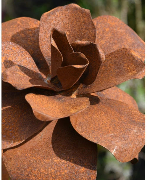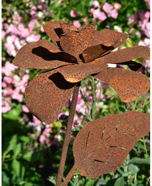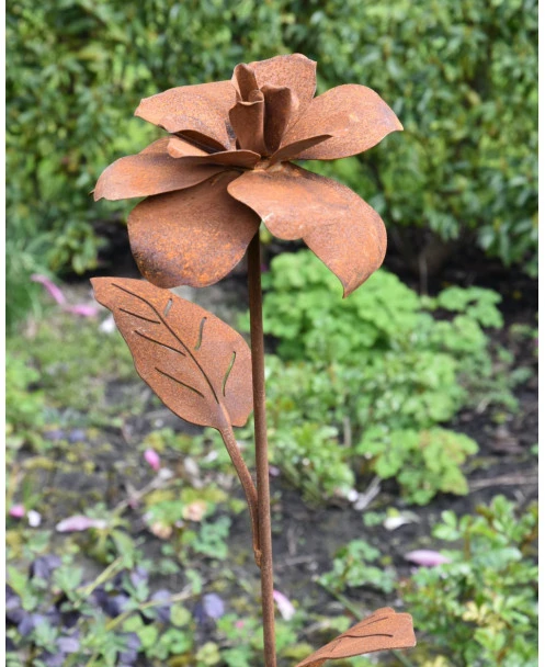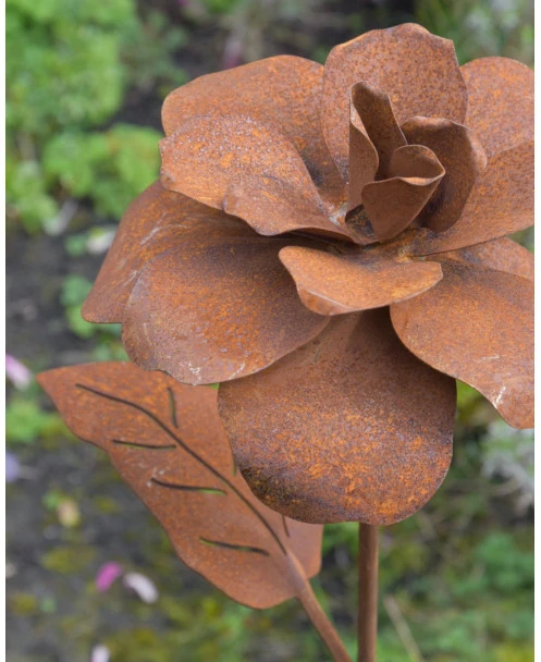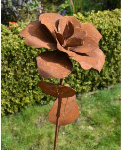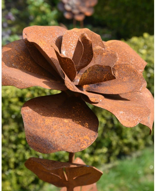 Bloemen tuinprikker Engelse Roos ecoroest. Deze mooie bloemen tuinprikker in het model van een Engelse roos is van ecoroest gemaakt en kan zo in de grond van de tuin worden geprikt. Zo heeft u het gehele jaar een prachtige grote bloem in de tuin die door de seizoen heel zijn charme afgeeft. In het voor jaar tussen de ontluikende bollen, de lente en zomer tussen mooie echte bloemen en planten weer in de herfst met allen mooie worden bruintinten en in de winter misschien wel met een laagje sneeuw…. Het is erg leuk om de bloemen te combineren en op verschillende hoogtes bij elkaar te plaatsen..