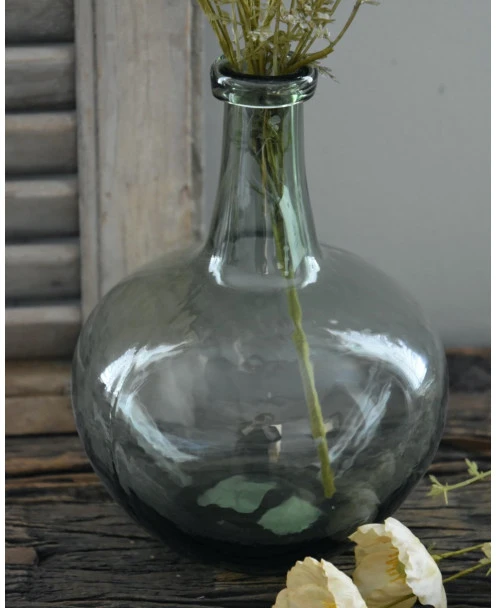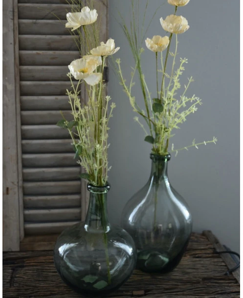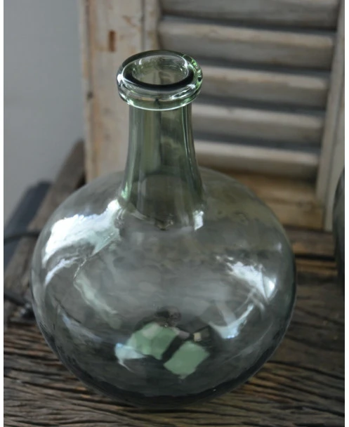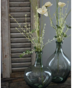 Bolle ballonvaas met groene gloed, IB Laursen per stuk. Deze mooie vaas is handgemaakt en heeft een transparante look met een groen accent. De mond geblazen fles vaas heeft een smalle hals met een omgevouwen rand. Doordat het een handgemaakt product is is iedere vaas uniek. De ballonvaas is ook in een iets grotere maat met net een ander model verkrijgbaar. Ze kunnen ook heel leuk gecombineerd worden en met een mooie tak gevuld, zoals op de afbeelding met een tak van IB Laursen of bv een mooie gras pluim.