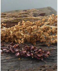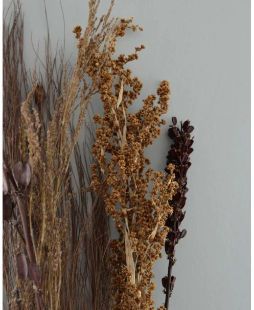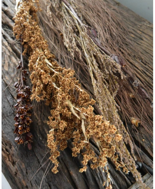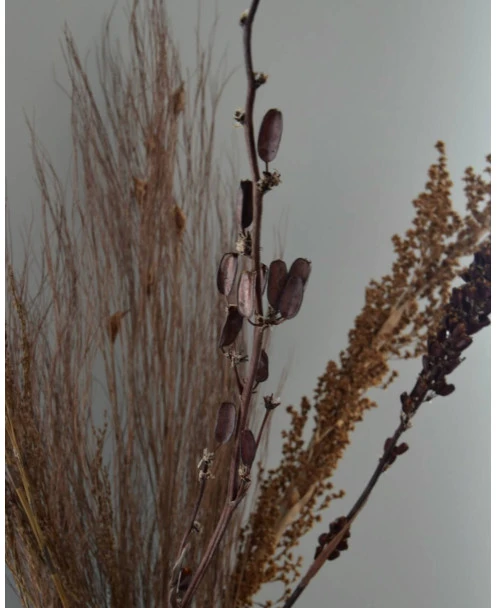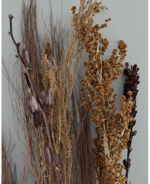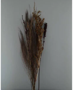 Gedroogde gemengde grassen en zaaddozen. Deze mix van bijzondere grassen en zaaddozen is in mooie warme tinten. U kunt zelf aan de slag met deze grassen. Zowel gemengd op de vaas als in verschillende vazen staan ze mooi.