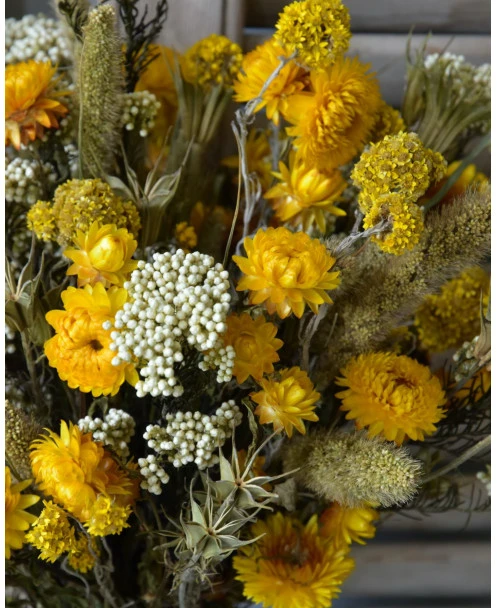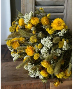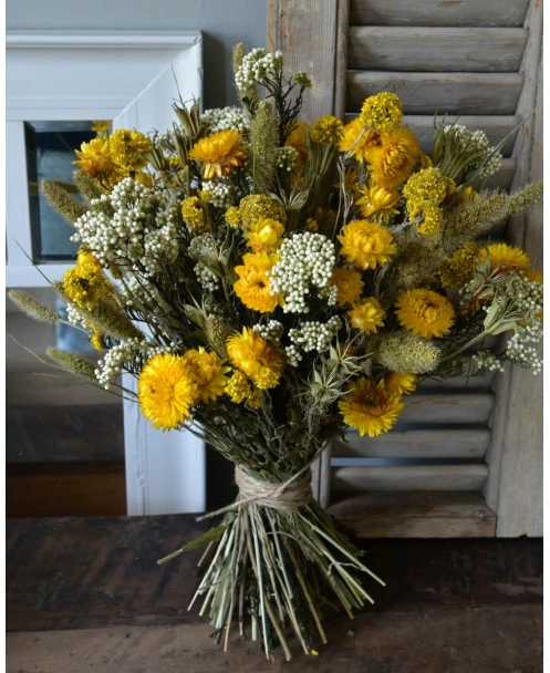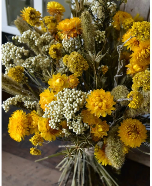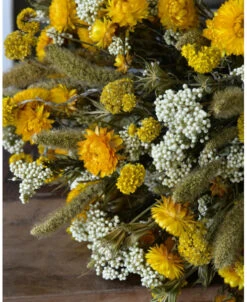 Gemengd Droogbloemen Biedermeier Boeket In Geel Wit En Groen