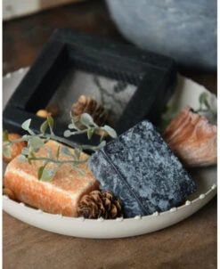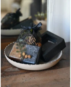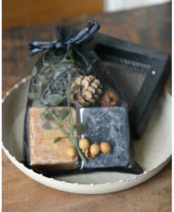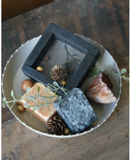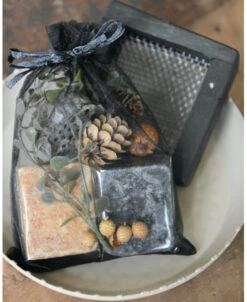 Geur-set twee Amber blokjes met schaaltje, rasp en decoratie. Dit leuke complete set van een taupe/zand kleurig metalen schaaltje, een zwarte retro rasp, een Amber blokje met Sandalwood geur, een Amber blokje met Musk geur en verschillende decoratie takjes en vruchten die het geheel afmaken (zit samen in een zwart organza zakje). Het complete set is ook erg leuk om cadeau te geven, vul dan de tekst voor het kaartje in en vergeet deze niet op te slaan. U kunt het gezellige geheel een mooi plekje geven. Wanneer de Amber blokjes iets minder zijn gaan ruiken kunt u er met de rasp een stukje afraspen om zo weer optimaal van de geur te genieten.