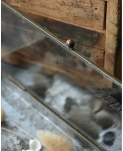 Glazen kistje in antiek-look met zinken bodem, IB Laursen. Dit leuke kistje is van metaal met een antiek-look handgemaakt met een glazen deksel. De bodem aan de binnenkant is in zink en de buitenkant zowel de zijkanten, bodem en deksel frame met knopje heeft de antiek-look. Het kistje is langwerpig en kan worden gebruikt om mooie vondsten in uit te lichten, of een mooi sieraad, schelp of kaartje…., ook wordt het kistje vaak op de kaptafel gebruikt met bv wat armbandjes e.d. Het kistje is met de hand afgewerkt waardoor ieder kistje een uniek uiterlijk heeft en daardoor ook zijn eigen oneffenheden. Dit hoort bij de charme van het product.