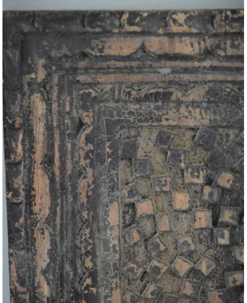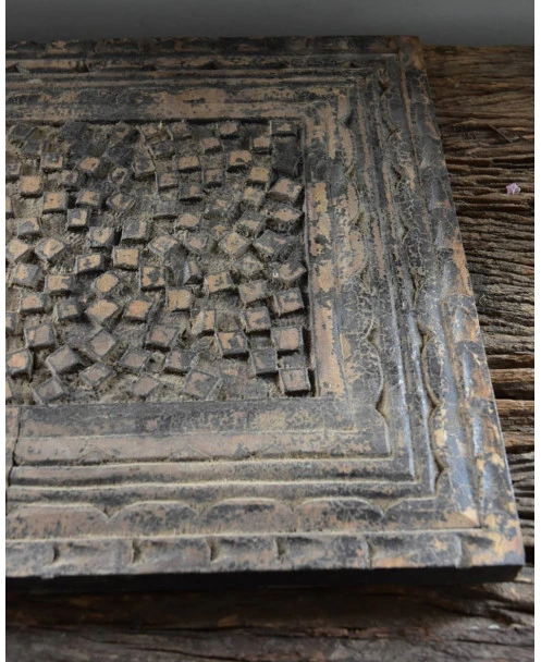 Grijs houtsnijwerk paneel van Be-Uniq. Dit vierkanten paneel heeft een mooie greywash look. Het houtsnijwerk komt hierdoor goed uit. het paneel is geschikt om ergen tegen de muur te zetten maar u kunt hem ook als sierplank op de tafel leggen en er bv wat stoere kandelaren op zetten.