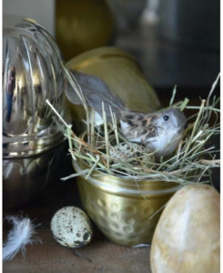 Groot antiek-look goud kleurig ei met reliƫf, IB Laursen. Dit prachtige ei bestaat uit twee delen die aan de buitenkant een iets verouderde goudkleur heeft. Het ei heeft een mooi reliƫf met rond stip patroon. U kunt het ei eventueel vullen of in zijn geheel decoreren. Het ei is ook in een zilver antiek-look verkrijgbaar (zolang de voorraad strekt).