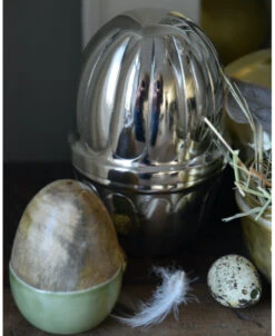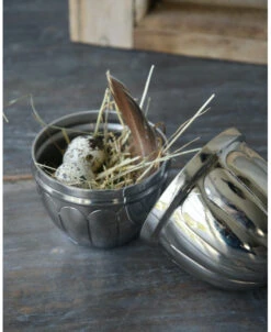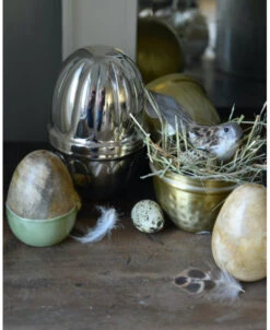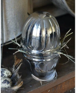 Groot antiek-look zilver kleurig ei met reliëf, IB Laursen. Dit prachtige ei bestaat uit twee delen die aan de buitenkant een iets verouderde zilverkleur heeft. Het ei heeft een mooi patroon als reliëf met glooiende lijnen. U kunt het ei eventueel vullen of in zijn geheel decoreren. Het ei is ook in een gouden antiek-look verkrijgbaar (zolang de voorraad strekt).