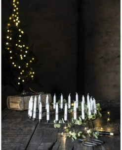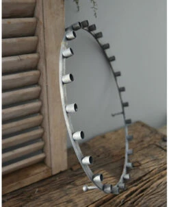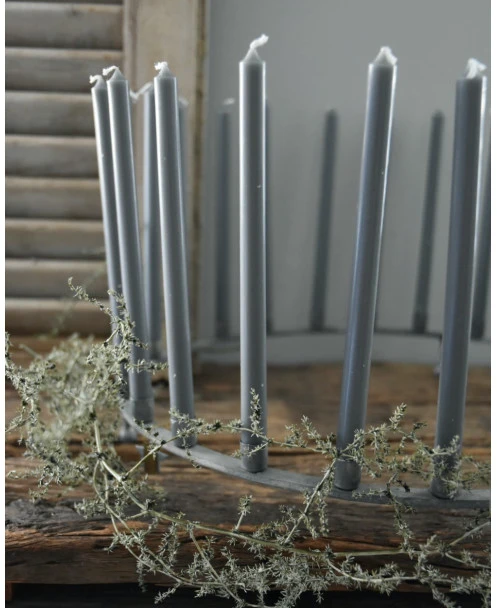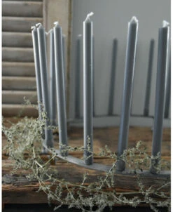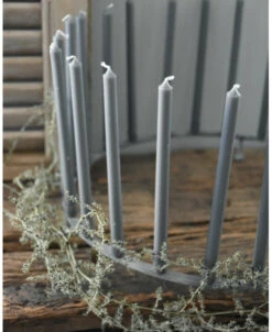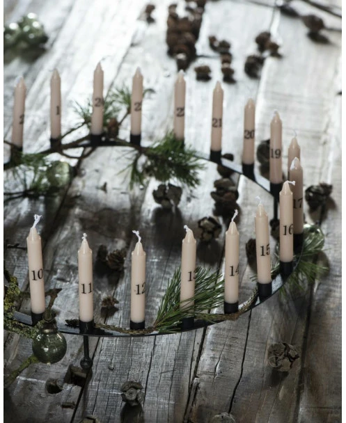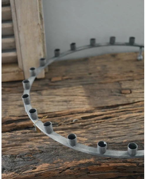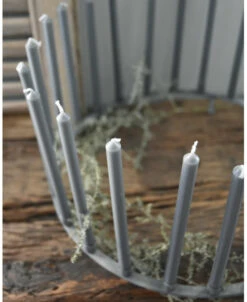 Grote kaarsen krans zink, IB Laursen. Deze grote krans waar 24 kaarsjes in passen is van het Deense merk IB Laursen. De krans is stevig eenvoudig van model en daardoor tijdloos en ieder seizoen leuk. De krans staat op pootjes maar kan ook worden opgehangen met een touw bv. Het is ook leuk om bv in de seizoenen te wisselen met een takje groen, schelpen, Rozenbotteltjes die met een paar draadjes vastgezet zijn aan het frame. Hij staat ook erg mooi in de serre of onder de overkapping. In de krans passen de smalle kaarsjes van IB Laursen.