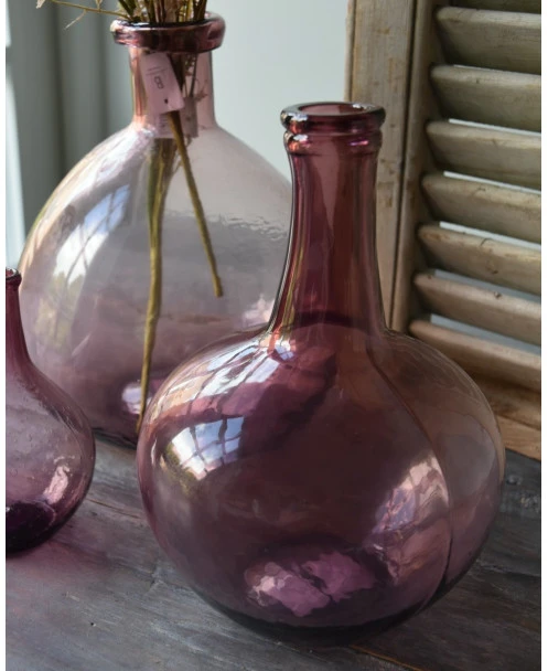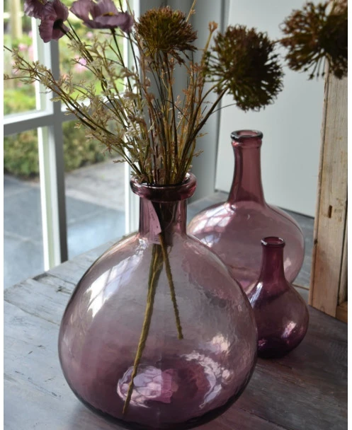 Hand geblazen glazen ballonvaas ‘malva’ met lange hals, IB Laursen. Deze mooie glazen ballonvaas is hand gemaakt en heeft een mooie diep roze ‘malva’ kleur. Doordat het een mond geblazen vaas is heeft iedere vaas zijn eigen gewicht en glasdikte. Ook de kleurdiepte kan iets verschillen, hierdoor is iedere vaas uniek en speciaal. De ballonvaas staat mooi bij het grote model en kan ook worden gemengd met de dunne glas serie vaasjes in verschillende modellen.