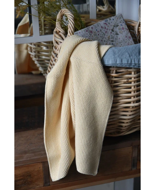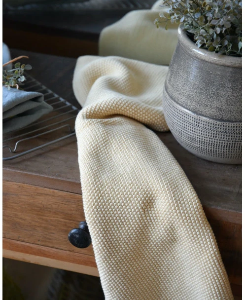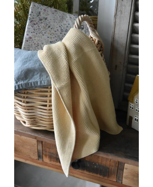Handdoek zacht geel Lemonade, IB Laursen. Deze prachtige handdoek van hoge kwaliteit heeft een zacht gele kleur, Lemonade. De Handdoek heeft een mooi gewoven patroon en is wat dikker waardoor hij zacht aanvoelt voor uw handen. De handdoek is in een rechthoekig model met in het middel een ophang lus. U kunt de handdoek fijn gebruiken in de keuken, maar het staat ook erg mooi, zeker in combinatie met gezellige bloemetjes theedoeken en servetten.