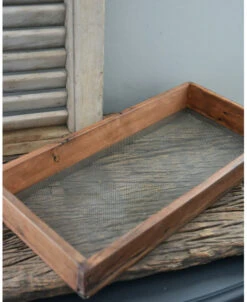 Houten bak met een bodem van fijn gaas, IB Laursen. Deze leuke bak van hout heeft een rechthoekig model. De bak heeft een bodem van heel fijn gaat wat een heel mooi effect geeft. U kunt de bak als decoratie blad gebruiken en er een leuke creatie van maken, met bv wat vaasjes potjes e.d. Zo heeft u ieder seizoen plezier van deze decoratieve bak.
