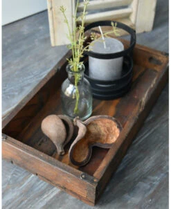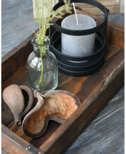 Houten bak met metalen beugeltjes, Unique IB Laursen. Deze prachtige box is gemaakt van gerecycled hout wat de box vol karakter maakt. Het hout is in een mooie donkere kleur tinten en op de hoeken zitten er metalen beugels die de sfeer compleet maken. De box kan gemakkelijk als plateau worden gebruikt om wat mooie kaarsen e.d. op te decoreren, een plantje, wat gedroogde bonen en vruchten……… De box is uit de Unique collectie van het Deense merk IB Laursen, iedere bak heeft ook zijn unieke kenmerken en kan daardoor iets afwijken van de afbeelding.