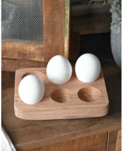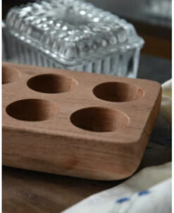Houten eierhouder voor zes eitjes, IB Laursen. Deze leuke eierhouder van naturel acacia hout heeft 6 uitsparingen voor eitjes. De eierplank is vrij zwaar, rechthoekig met naar beneden afgeronde hoeken en 6 holletjes waar u eitjes in kunt zetten. U kunt dit handige rekje leuk op de aanrecht decoreren met eitjes op voorraad, op de ontbijttafel met gekookte eitjes, of op een bijzettafeltje met chocolade eieren….