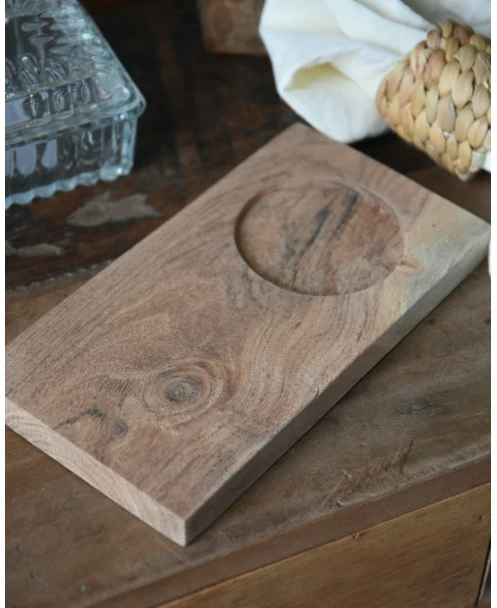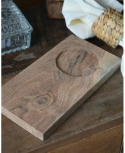 Houten serveerplank met cup houder, IB Laursen. Deze leuke serveer- of ontbijt- plank is van acacia hout in een rechthoekig model met een ronde uitsparing waar een glas of een schaaltje bv in gezet kan worden. De plank is van naturel hout. waardoor iedere plank zijn eigen unieke uitstraling heeft. U kunt hem gebruiken als kleine ontbijtplank met een glas jus en een lekker broodje erop bijvoorbeeld of als borrelplank met blokjes kaas en een schaaltje dip……. Plank is exclusief decoraties en glas.
