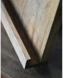 Kookboek standaard van hout in snijplank look. Deze leuke kookboeken standaard van naturel Mango hout is in het model van een snijplank. Aan de onderkant zit een mooie steun waar u een kookboek in kunt zetten en door het opstaande randje blijft het boek gemakkelijk op de juiste bladzijde. Aan de achterkant zit een houten uitklapbare steun die met scharnieren open klapt, de bovenkant van het kookboeken rek is net het handvat van een snijplank met daaraan de jute lus. U kunt de steun mooi op de aanrecht presenteren met een mooi recept of op deze manier gebruiken als u aan de slag gaat. De standaard is van naturel hout gemaakt en iedere standaard verschilt hierdoor in kleur/tint en houtnerf patroon, het mooie van een natuur product.