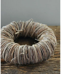 Krans van Mactan gras. Deze krans is gemaakt van het dikke Mactan grass. Door de manier omwikkelen van het Mactan heeft de krans deze vorm gekregen. De krans is van een natuurlijke kleur met een lichte iets white wash. U kunt de krans als decoratie ophangen, of bv op een mooie pot plaatsen met een plant erin voor een mooi effect.