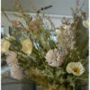 Kransje met groen en bloemetjes, eitjes en veertjes. Dit leuke kransje van Salim twijgen is opgemaakt met kunst/zijde bloemetjes en groen en verder afgewerkt met kwarteleitjes en witte veertjes. U kunt het kransje zo neer-leggen/zetten op een mooie schaal of pot bijvoorbeeld en heel lang genieten van dit lente/zomer kransje. Door de rustige kleuren past het gemakkelijk overal bij en geeft het een mooie frisse voorjaars touch.