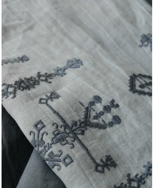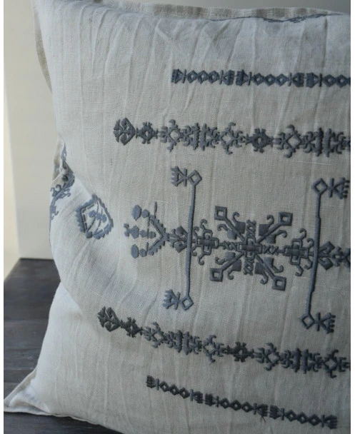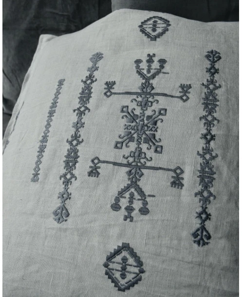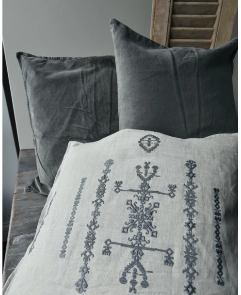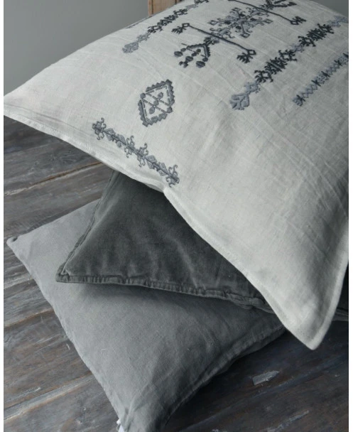 Kussen Hoes Linnenlook Met Grijs Borduursel, IB Laursen