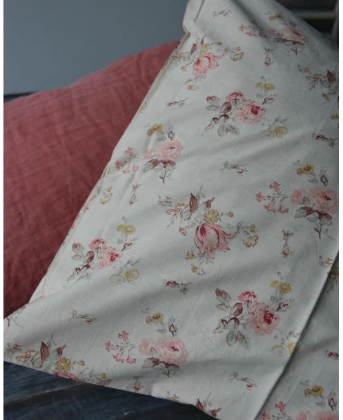 Kussenhoes Beige Met Coral/sand Rozen Vierkant, IB Laursen