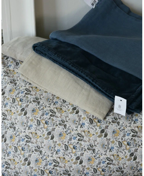 De gezellige print past goed bij: Velours kussen historical blue, kussenhoes rechthoekig historical blue(foto 2, 4, 5, 6, 8), velours ’thunder grey’ vierkante kussenhoes, linnenlook rechthoekige kussenhoes ‘Thunder grey (foto 5), vierkant velours kussen fog, linnenlook kussen hoes fog (foto 4, 5, 8)die overigens samen heel goed gecombineerd worden…