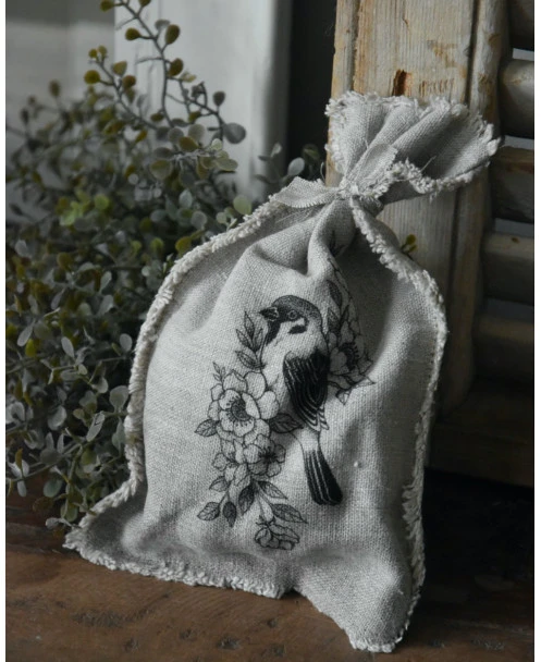 Linnen Geurzakje Met Vogel Op Bloesem Tak, Shabby