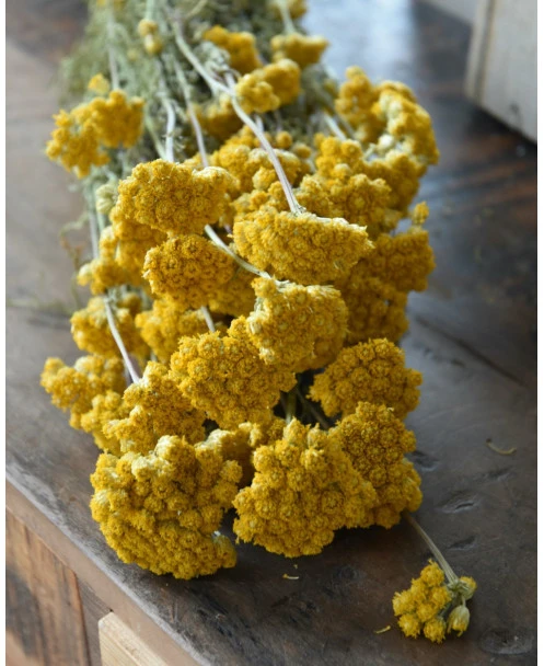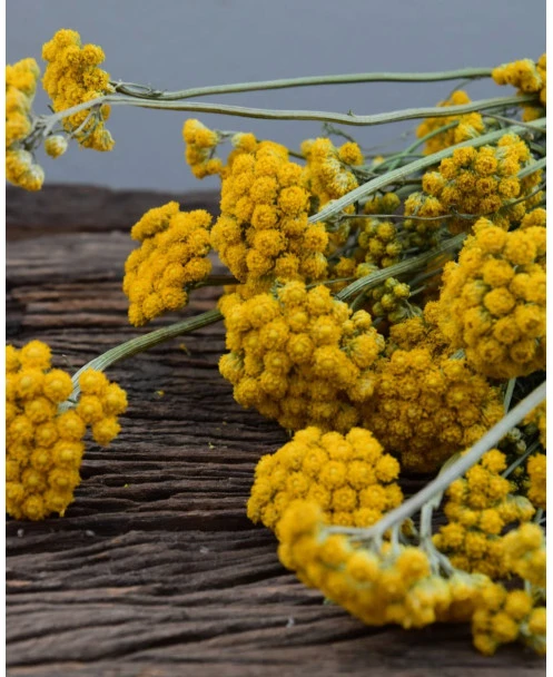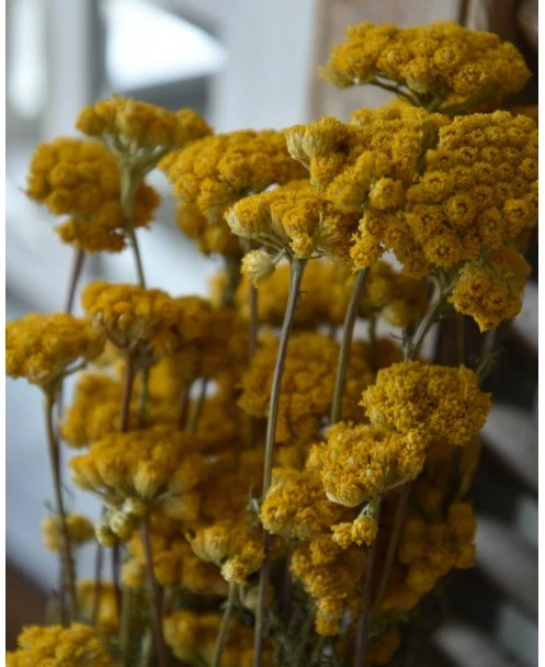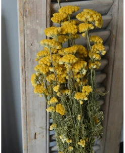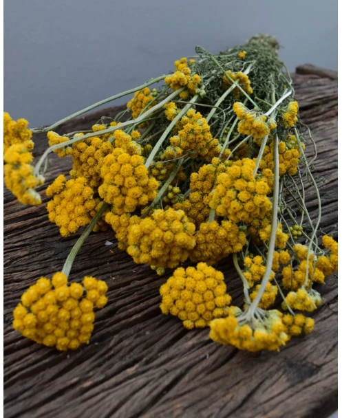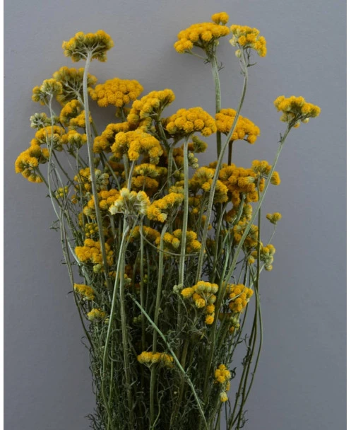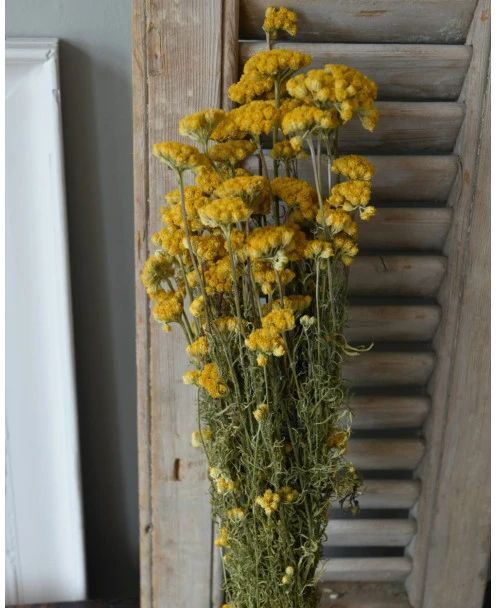 Lona geel is een gedroogde bos bloemen met fijne bolletjes op een tros. De bloemen zitten in een bos die verschillende lengtes en verschillende formaten bloemen heeft. Dit geeft een mooi effect en zo kan ieder bloemetje een mooie positie krijgen in uw vaas of boeket.