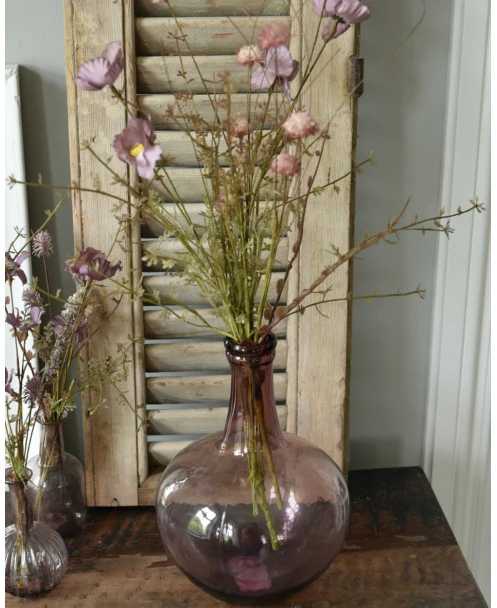 Malva roze ballon vaas met zijde bloemen, IB Laursen. Deze mooi gevormde ballonvaas heeft een Malva roze gloed en is opgemaakt met gemengde zijde/kunst bloementakken. Het gehele set komt uit de collectie van het Deense merk IB Laursen. De mooi gevormde vaas is met de hand gemaakt en de bloementakken passen perfect in deze kleuren. U kunt de vaas zo neerzetten en genieten van het geheel. ook past deze combinatie goed bij het set kleine Malva kleurige vaasjes.