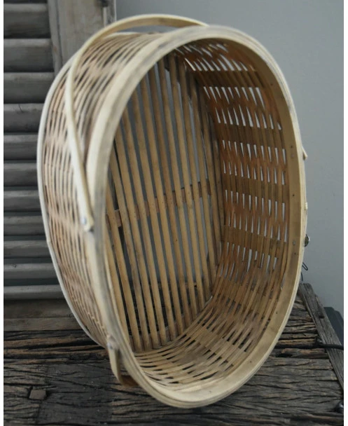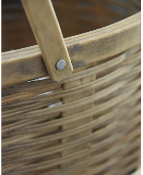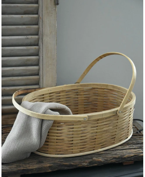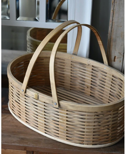 Mand met twee hendels M, IB Laursen. Deze prachtige ovale mand heeft een mooi vlechtwerk. Het vlechtwerk is van dun hout gemaakt, ook de bodem heeft een mooi patroon. Aan de mand zitten twee hengsels die in verschillende posities kunnen worden gezet. U kunt de mand leuk vullen met een kleed en bloemen bijvoorbeeld. Hij kan in iedere ruimte in huis worden gedecoreerd.