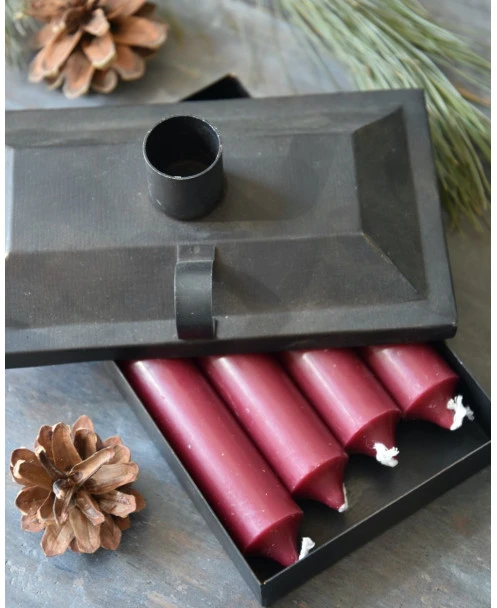 Metalen kandelaar en opbergbox rustic, IB Laursen. Deze leuke kandelaar en doos ineen is van metaal gemaakt in een rechthoekig model. Het deksel en tevens kandelaar heeft een klein oor en facet randen die het geheel zijn karakter en uitstraling geven. De kaarsen inzet is voor een normale tafelkaars geschikt en in de door passen wat kortere kaarsen. De kandelaar box is geschikt voor het gehele jaar en er kan met een kleur kaars een geheel andere sfeer ontstaan.