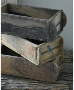 Oude houten steenmal, IB Laursen per stuk. Deze prachtige oude steenmal is in een rechthoekig model. Iedere steenmal is uniek met zijn eigen kenmerken en tinten, hierdoor zie je dat het een echt oud gebruikt product is vol karakter. Zo verschillen de bakken in tint in ‘afwerking’ en heeft de een een scheur in het hout en de ander mist een stukje metaal…..iedere steenmal is uniek. De steenmal staat mooi als bv kruiden/snijplank bak op de aanrecht. op de tafel met mos en kaarsen, met kandelaren……
