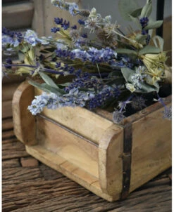 Oude houten steenmal, IB Laursen per stuk. Deze prachtige oude steenmal is in een rechthoekig model. Iedere steenmal is uniek met zijn eigen kenmerken en tinten, hierdoor zie je dat het een echt oud gebruikt product is vol karakter. Zo verschillen de bakken in tint in ‘afwerking’ en heeft de een een scheur in het hout en de ander mist een stukje metaal…..iedere steenmal is uniek. De steenmal staat mooi als bv kruiden/snijplank bak op de aanrecht. op de tafel met mos en kaarsen, met kandelaren……