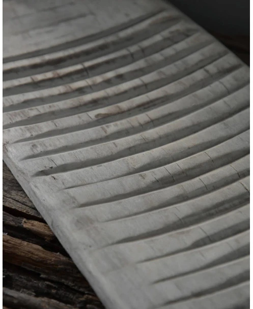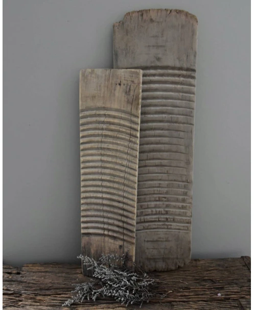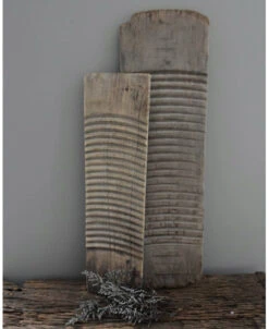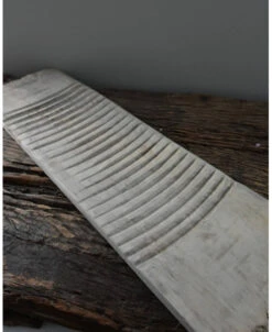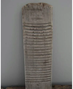 Oude houten wasbord. Het unieke plankje is bijna wit grijs van kleur door het wassen. De kleur en de slijtage plekken geven karakter aan dit mooie exemplaar.