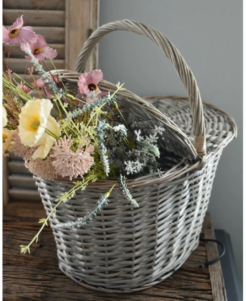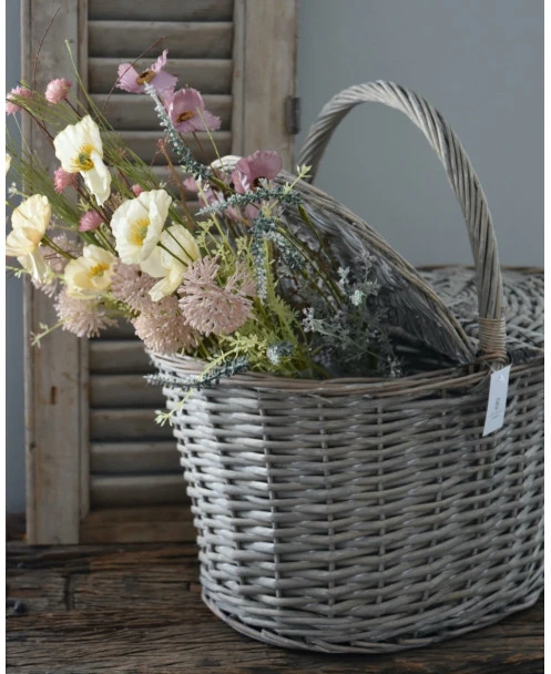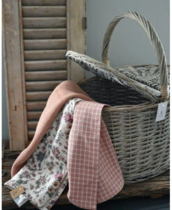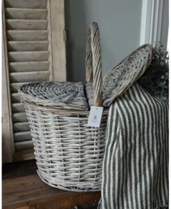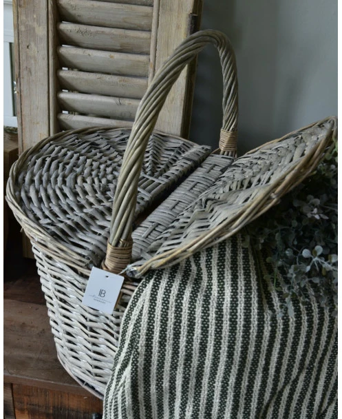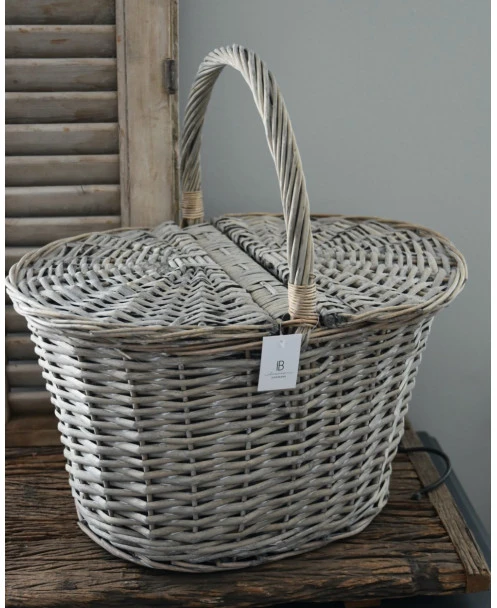 Ovale mand met twee deksels, IB Laursen. Deze ‘picknick’ mand is van vergrijst riet gevlochten en heeft een hengsel en twee kleppen die de mand afsluiten. De mand kan heel decoratief worden gebruikt met IB Laursen bloemen of droogbloemen, maar ook in combinatie met mooie keukendoeken. Een gezellige picknick is natuurlijk ook een geweldige optie.