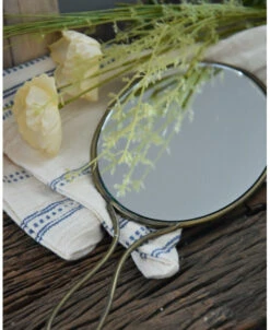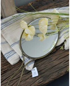 Ovalen handspiegel, IB Laursen. Deze leuke spiegel heeft een ovale vorm die wordt benadrukt Door het ronde metaal. De spiegel heeft een handvat van metaal die open is zodat u de spiegel ook makkelijk en decoratief kunt ophangen aan een rekje bijvoorbeeld.