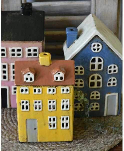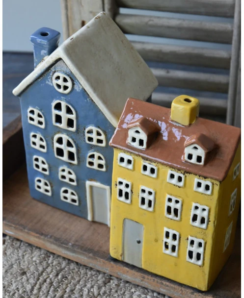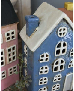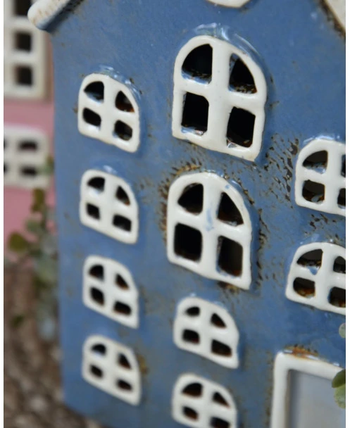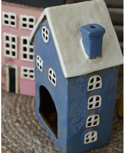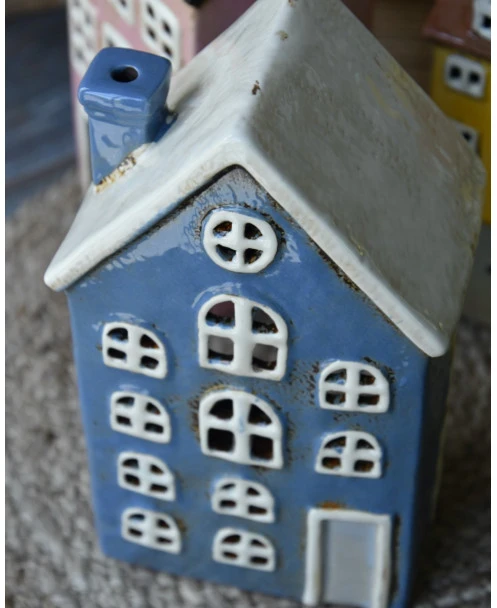 Pakhuis Nyhavn blauw met schoorsteen en open ramen, IB Laursen. Dit leuke theelicht pakhuisje geïnspireerd uit de Deense havenstad Nyhavn met al zijn gekleurde pakhuizen is van mooi ceramiek gemaakt. Het pakhuis is in een mooie blauwe kleur met lichte ramen en zacht grijze voordeur, alle ramen zijn open en ook de schoorsteen, zodat er een mooi sfeervol licht ontstaat als u er een kaarsje/waxinelichtje in brand.