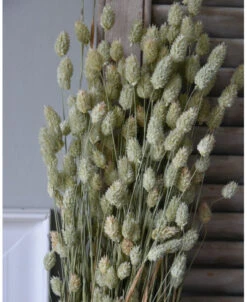 Phalaris per bos. Deze gedroogde grassen zijn zacht groenig to naturel van kleur en zitten in een volle bos. De grasjes hebben een kleine gedetailleerde kopjes die bestaat uit soort kleine schubben. De Nederlandse naam van dit gras soortje is Kanariegras. U kunt ze leuk in een kan zetten, of in een mooie mand leggen. Ook is het grassoort heel geschikt om in boeketten te verwerken of andere creatieve stukken.