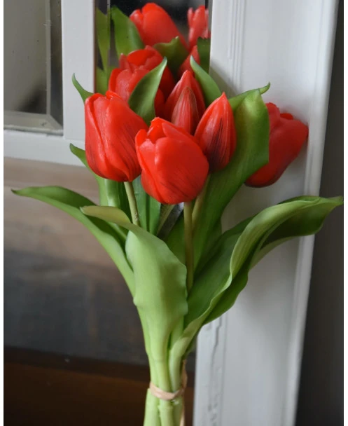 Real Touch Vermeer Tulpen GemĂȘleerd Rood, Bos 7 Stuks