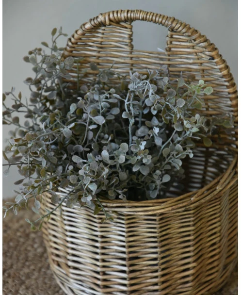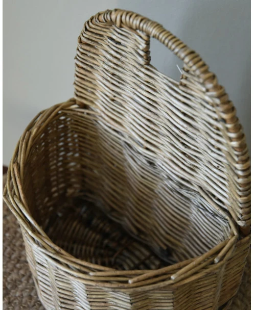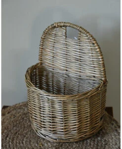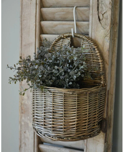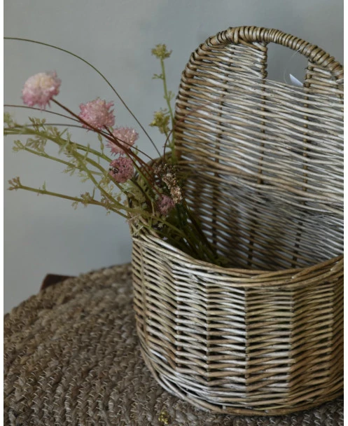 Rieten wand mand half rond, IB Laursen. Deze leuke mand heeft een platte achterkant waardoor hij ook erg leuk opgehangen kan worden. De mand is van riet, half rond en ook een half ronde achterkant met een vierkant gat zodat u hem gemakkelijk aan het keukenrek bijvoorbeeld kunt handen. De mand staat erg leuk met een kunstplantje of wat bloemetjes, handig met wat uien in de keuken……