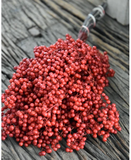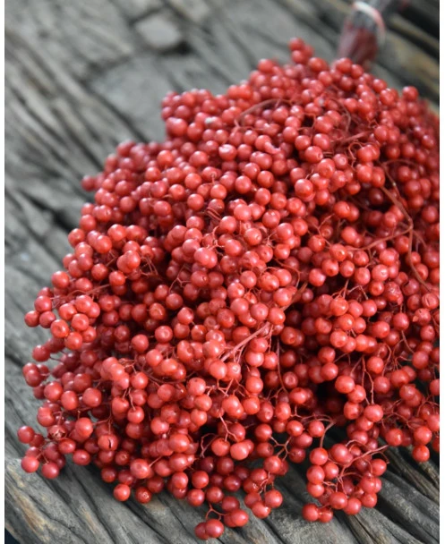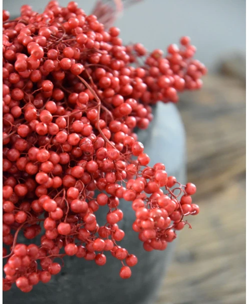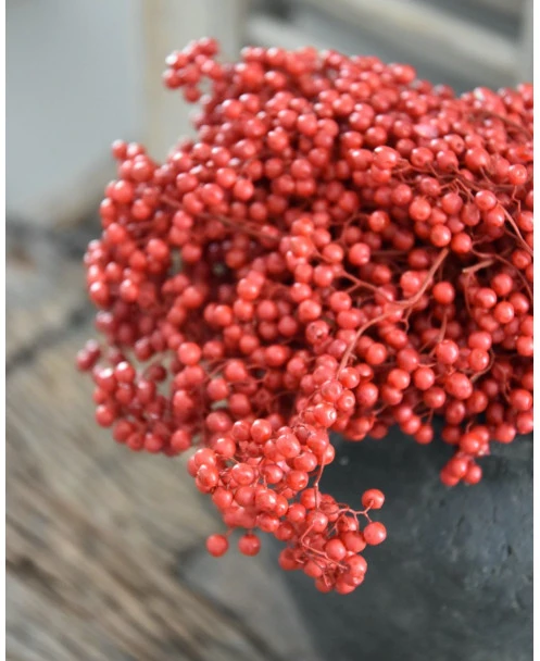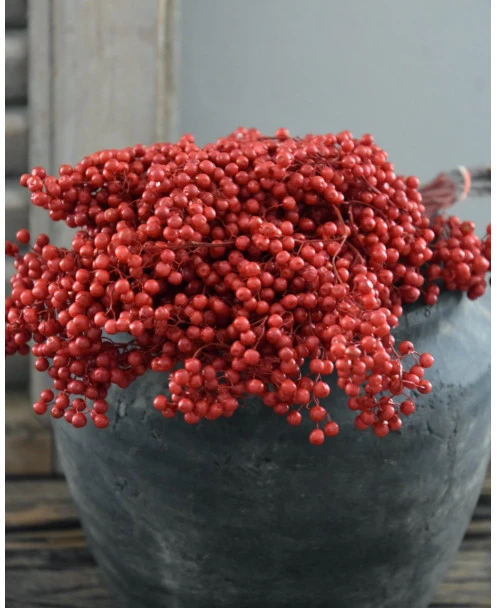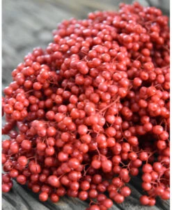 Rode Peperbessen, gedroogd per bos. Peperbesjes als decoratie in de keuken op een pot… Deze rode besjes geven heel veel sfeer en zijn als een bundel gebonden.