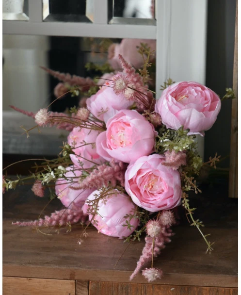 Roze Zijde Bloemen Biedermeier Boeket Met Pioenrozen