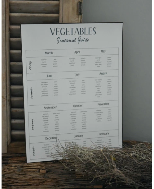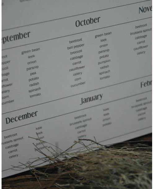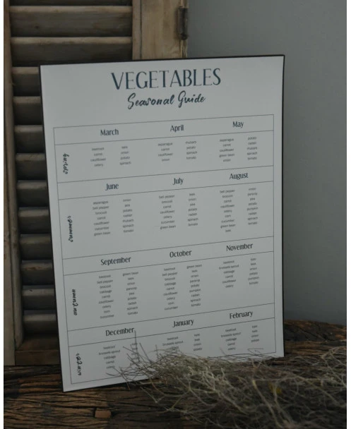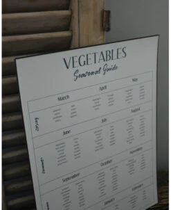 Seizoensbord voor groente, IB Laursen. Dit leuke bord is van metaal gemaakt en heeft een leuk overzicht ‘gids’ van alle maanden van het jaar en welke groenten er dan is. Zo kunt u leuk en makkelijk kijken wanneer u welke groente kunt krijgen, naar het seizoen. Het bord is in het Engels en in een mooie neutrale off-white kleur. Aan de achterzijde zitten twee lippen waarmee u het bord makkelijk zou kunnen ophangen.