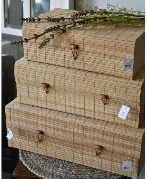 Set Bamboe Opberg Kistjes Met Houten Knop Sluiting Van 3, IB Laursen