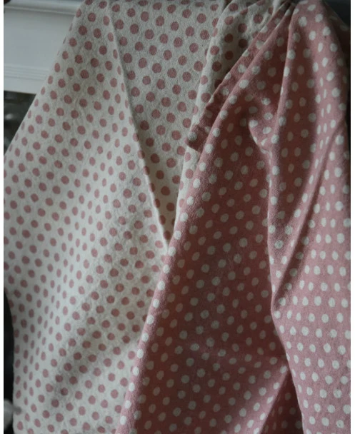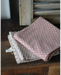 Set theedoeken met stippen in roze, IB Laursen. Dit leuke set theedoeken heeft een stippen patroon waarvan de een gebroken wit met roze stippen en de ander precies andersom roze met gebroken witte stippen. De theedoeken zijn rechthoekig en hebben elk een lusje in het midden van het ‘kortere’ stuk. De theedoeken zijn van katoen en staan erg mooi en fleurig in de keuken aan het haakje/rekje of over de stang van het fornuis bijvoorbeeld.