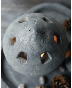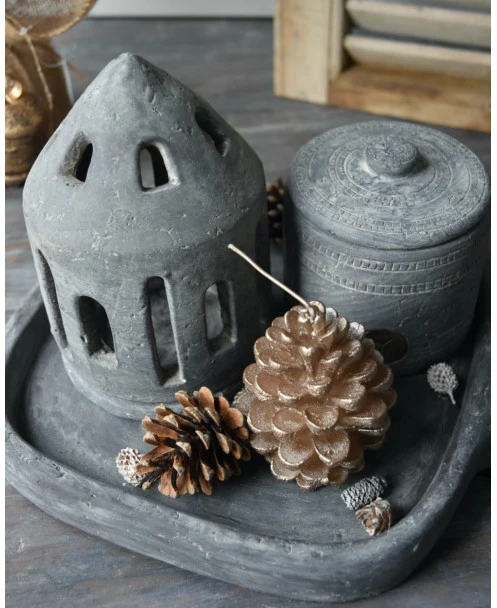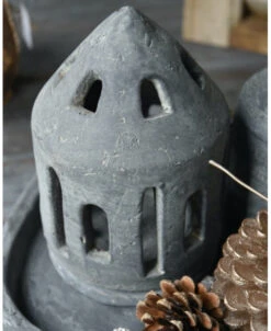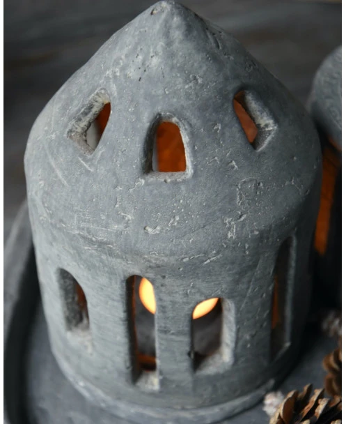 Theelicht Houder Huis Rond Vintage Grijs Groot, Brynxz