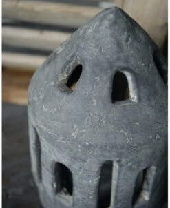 Theelicht houder huisje rond Vintage grijs groot, Brynxz. Dit leuke ronde huisje van aardewerk in een grijze Vintage uitvoering heeft lange ramen in verschillende maten en een punt dak met kleine raampjes waar het licht van het kaarsje door kan schijnen. Het huisje bestaat uit twee delen, de bodem waar u het waxinelichtje op zet en het gehele huisje. (Hierdoor is er ook geen groot gat aan de achterzijde wat een leuk voordeel is). Het huisje komt ook nog in een kleinere maat.