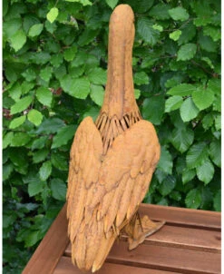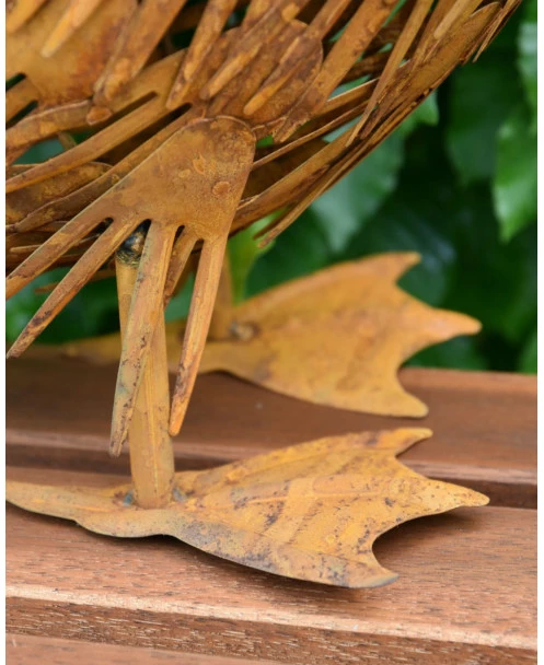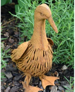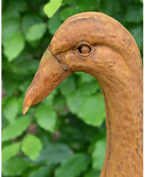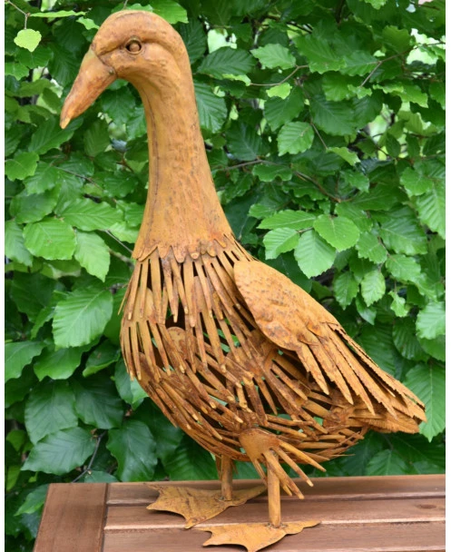 Tuin decoratie vogel de Gans in 3D. Deze elegante Gans is van metalen gemaakt volledig in 3D en heeft een mooie roestlaag die door een speciale behandeling verkregen is. De Gans verdiend een mooie plek in de tuin bv om daar te schitteren. De Gans is met mooie detail in de kop, het verendek en de typische zwempoten gemaakt van ecoroest metaal en blik. U kunt hem zo neerzetten op zijn poten, door de warme natuurlijke kleuren past hij heel goed in de tuin.