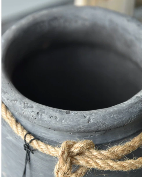 Vintage Grijze Pot Met Dik Touw Groot, Brynxz