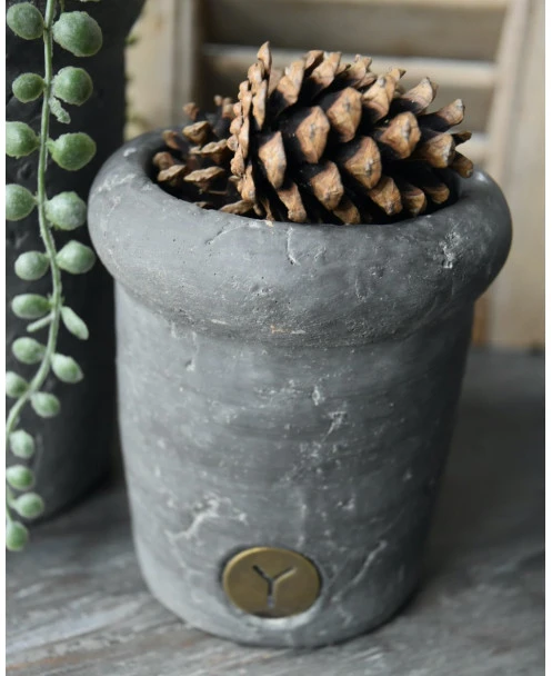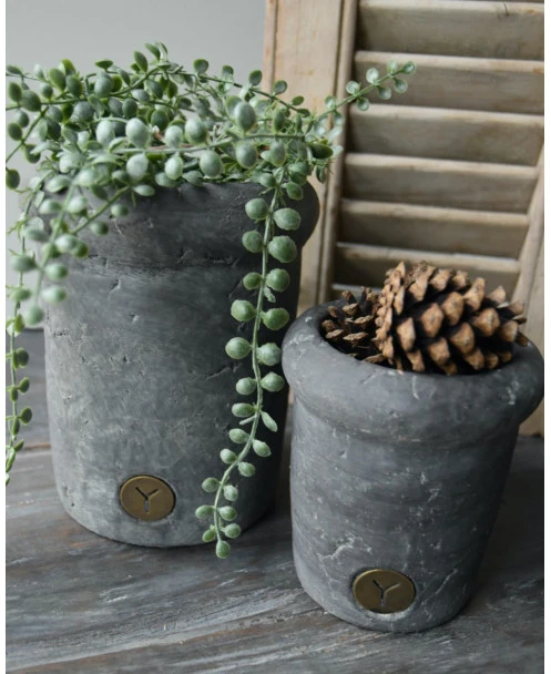 Vintage grijze rechte pot met bolle rand klein, Brynxz. Deze zware pot uit de Vintage serie van Brynxz loopt recht omhoog met een dikke bolle rand. Aan de voorzijde zit het Brynxz logo verwerkt in de pot. De pot is ook in een grotere maat verkrijgbaar. U kunt de pot als planter gebruiken bv.