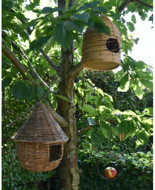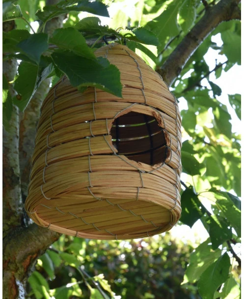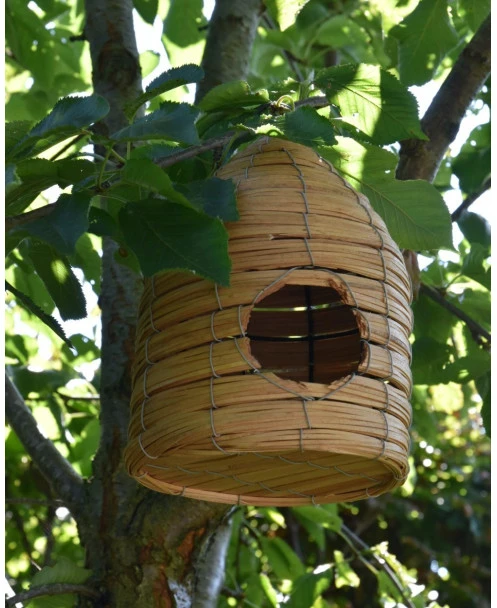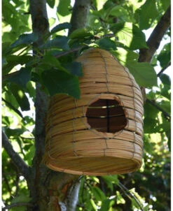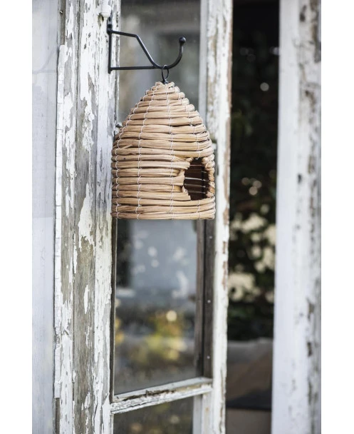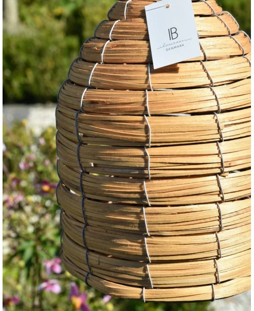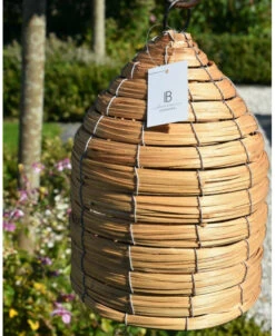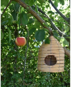 Vogel huis korf met ophang oog, IB Laursen. Dit leuke vogelhuisje heeft een mooi patroon waardoor het model net een bijenkorf is. Aan de voorzijde zit een rond gat waar de vogel in kunnen en de bodem is plat. U kunt de korf ophangen in een boom, aan een haak of paal en genieten van alles wat er voorbij vliegt…. Het huisje is ook leuk om bv te vullen met een vetbol e.d. zodat het een voederhuisje wordt.