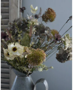 Warm gemengd boeket in taupe, ‘zijdebloemen’ per stuk. Dit prachtige pluk boeket in warme taupe tinten is gemengd opgemaakt met kunstbloemen. De bloemen zijn van mooie kwaliteit en met verschillende stoffen en materialen gemaakt om zo echt mogelijk te lijken. Het boeket is in warme tinten die heel rustig zijn en een mooie harmonie hebben voor een perfecte balans. Het boeket is met jute touw gebonden en kan zo op een mooie kan of vaas worden gezet.