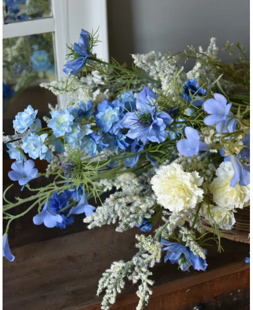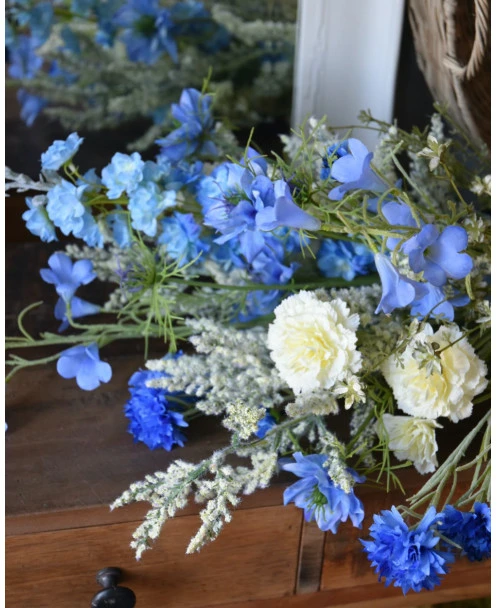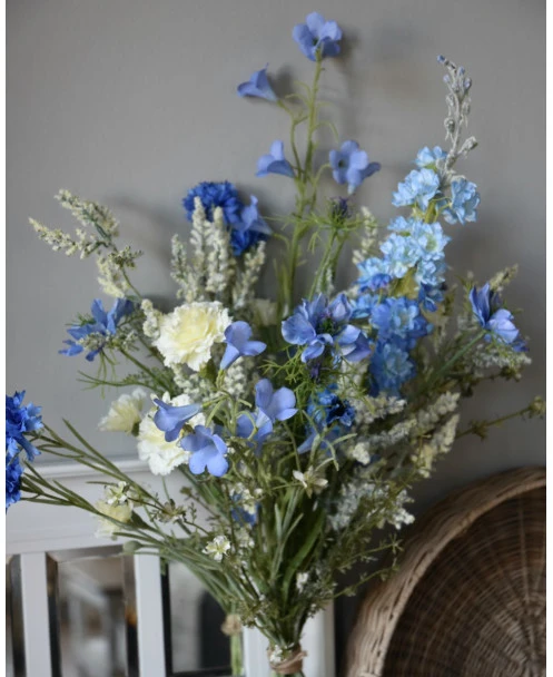 Zijde Boeket Met Tuinbloemen In Het Blauw Wit
